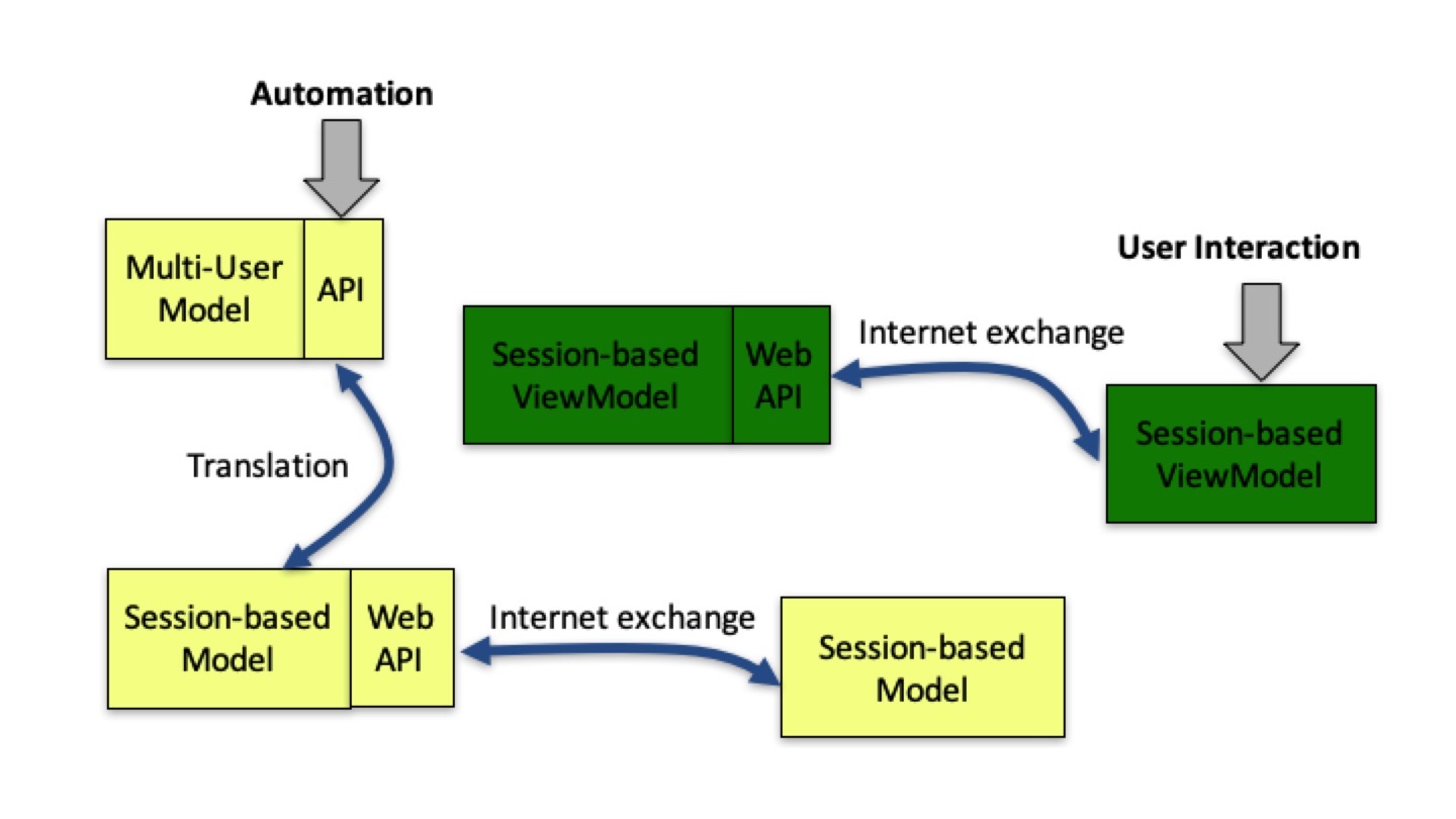 所以,对 Server 端来说,最底层的是一个多租户的 Model 层(Multi-User Model),它实现了自动化(Automation)所需的 API。