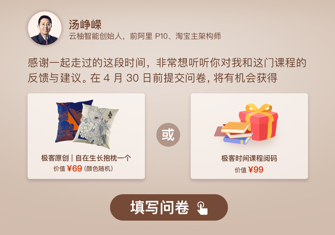 最后,希望你能花两三分钟填写一下这份问卷,非常期待能听到你对这门课的反馈。