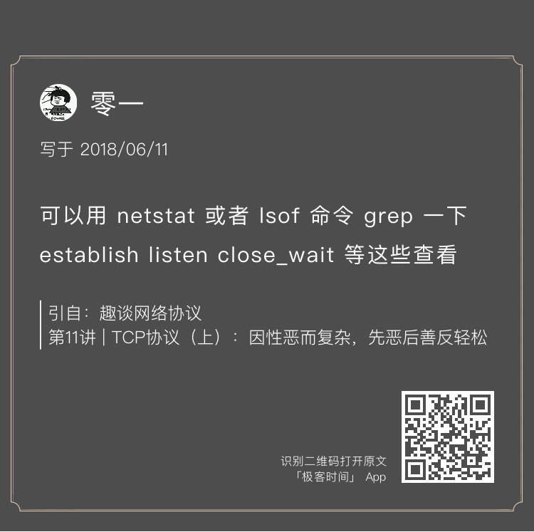TCP 的连接有这么多的状态,你知道如何在系统中查看某个连接的状态吗?