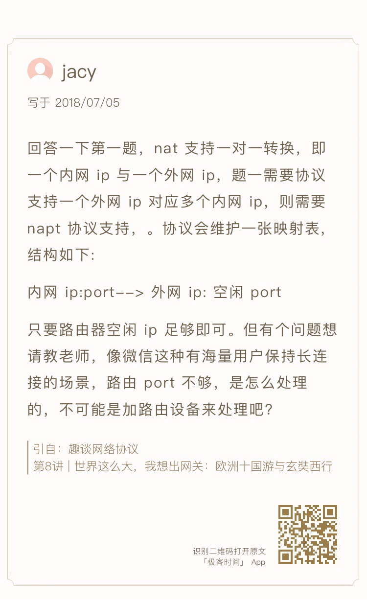 当在你家里要访问 163 网站的时候,你的包需要 NAT 成为公网 IP,返回的包又要 NAT 成你的私有 IP,返回包怎么知道这是你的请求呢?它怎么能这么智能地 NAT 成了你的 IP 而非别人的 IP 呢?