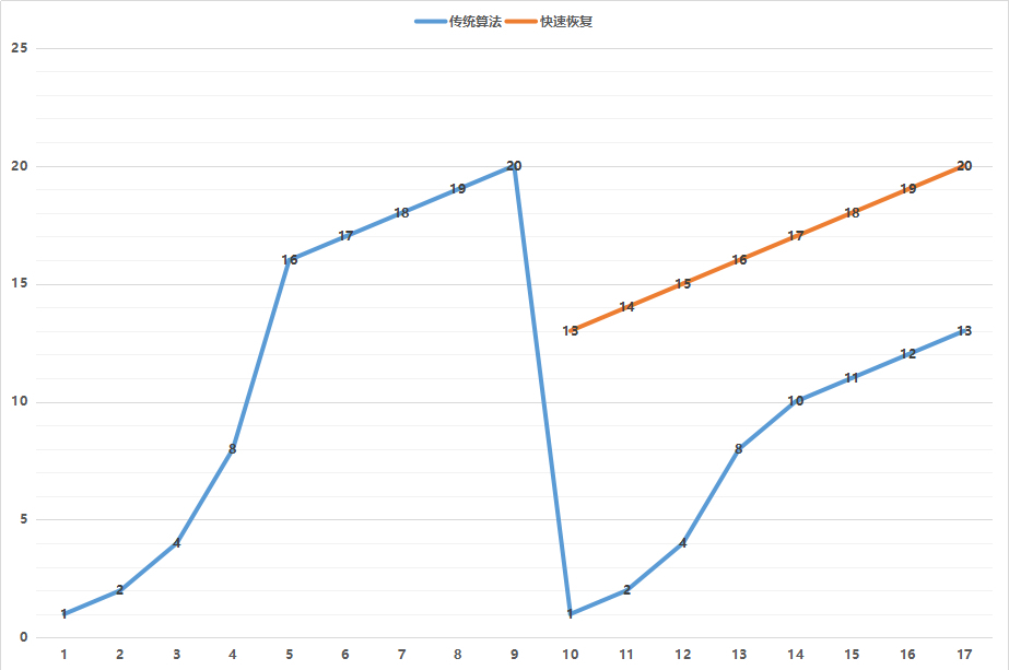 前面我们讲过快速重传算法。当接收端发现丢了一个中间包的时候,发送三次前一个包的ACK,于是发送端就会快速地重传,不必等待超时再重传。TCP认为这种情况不严重,因为大部分没丢,只丢了一小部分,cwnd减半为cwnd/2,然后sshthresh = cwnd,当三个包返回的时候,cwnd = sshthresh + 3,也就是没有一夜回到解放前,而是还在比较高的值,呈线性增长。