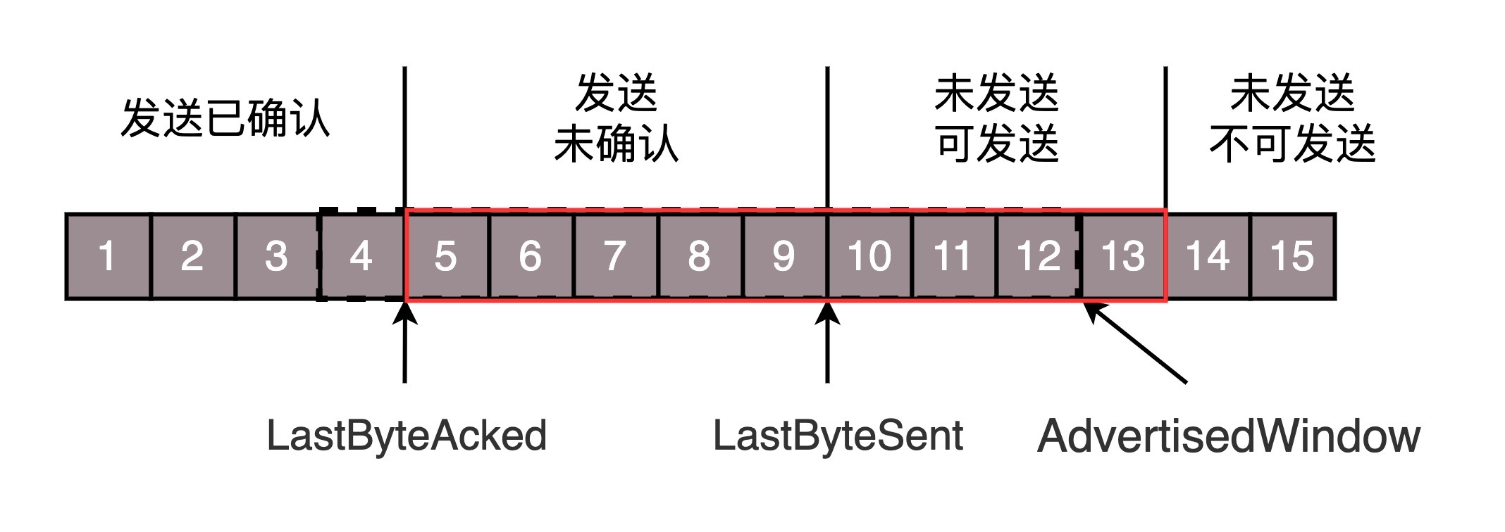 LastByteAcked:第一部分和第二部分的分界线