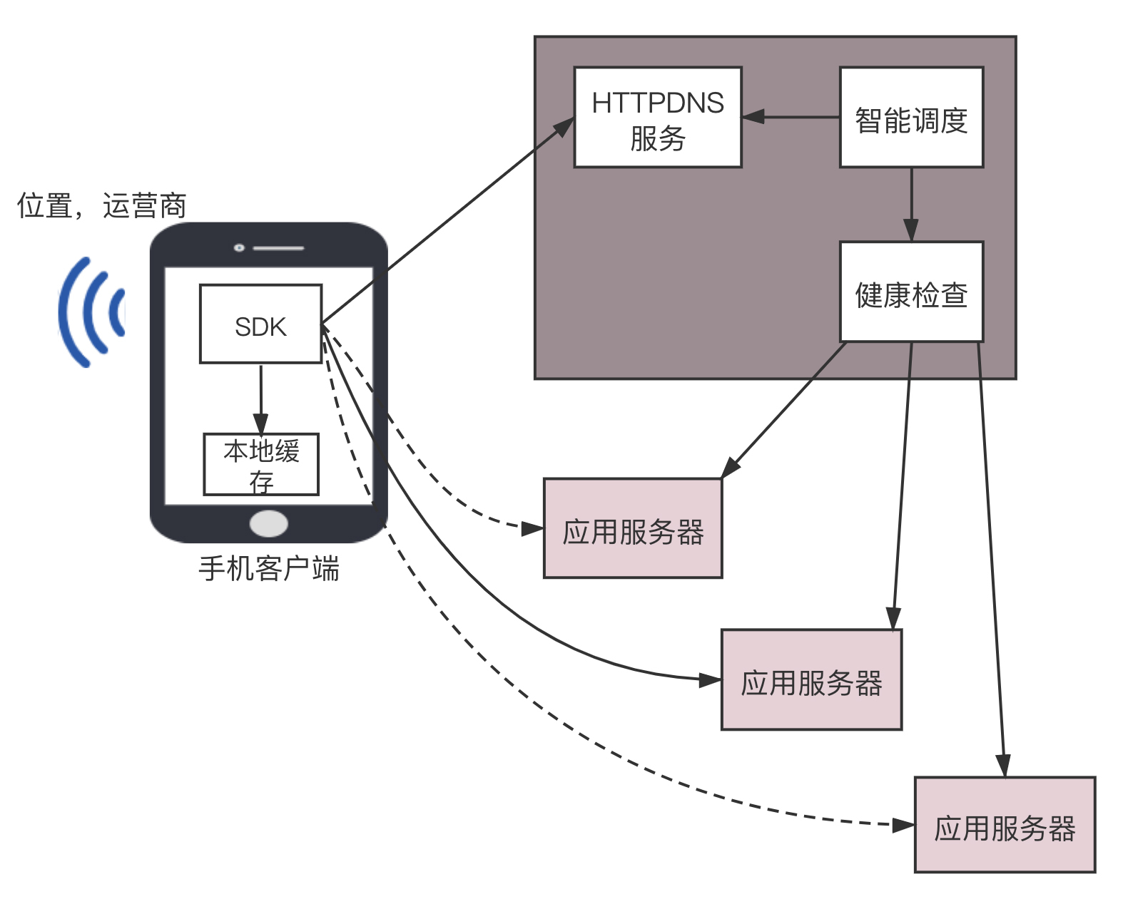 在客户端,可以知道手机是哪个国家、哪个运营商、哪个省,甚至哪个市,HttpDNS服务端可以根据这些信息,选择最佳的服务节点访问。