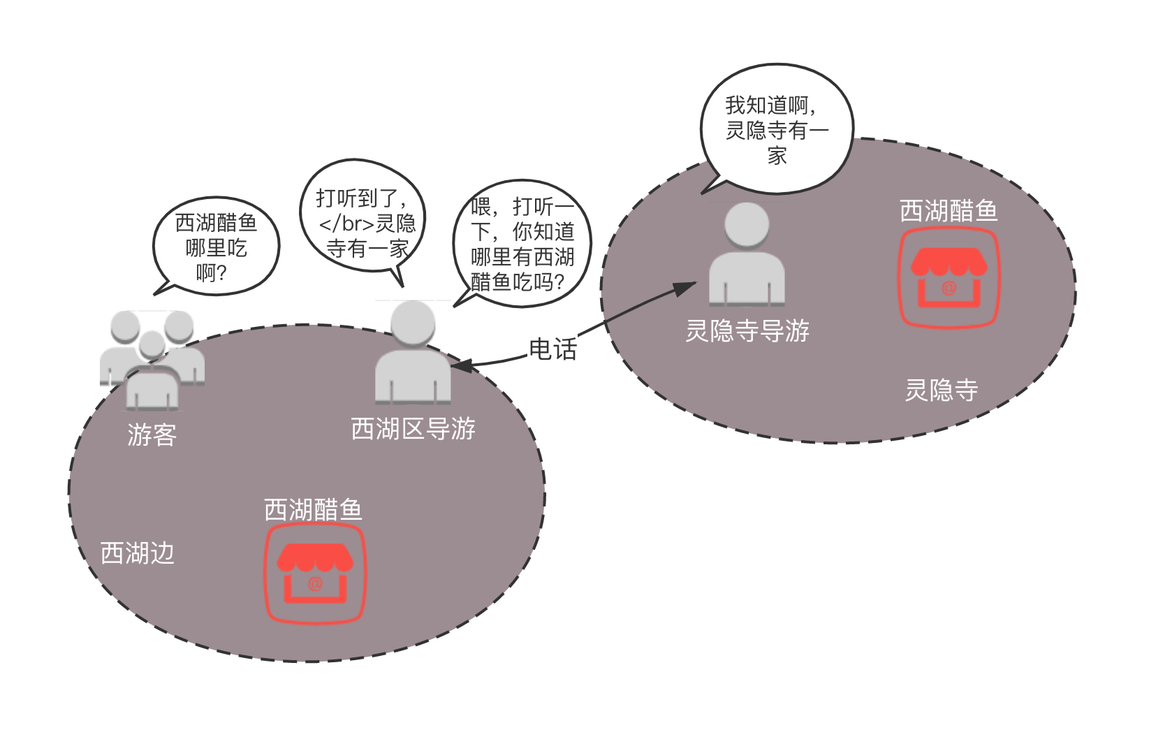 就像上一次客户要吃西湖醋鱼的事,导游知道西湖边有一家,因为当时游客就在西湖边,可是,下一次客户在灵隐寺,想吃西湖醋鱼的时候,导游还指向西湖边的那一家,那这就绕得太远了。