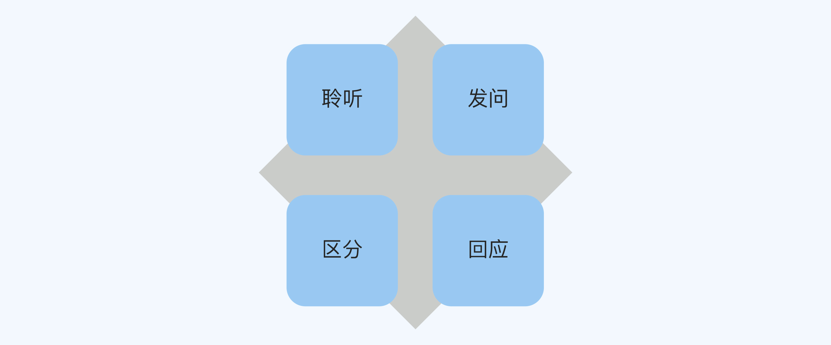 1. 聆听:通过聆听发现对方可能存在的问题,比如我从一开始的对话中,听出了A主管的情绪变化是因为担心自己不被认可。