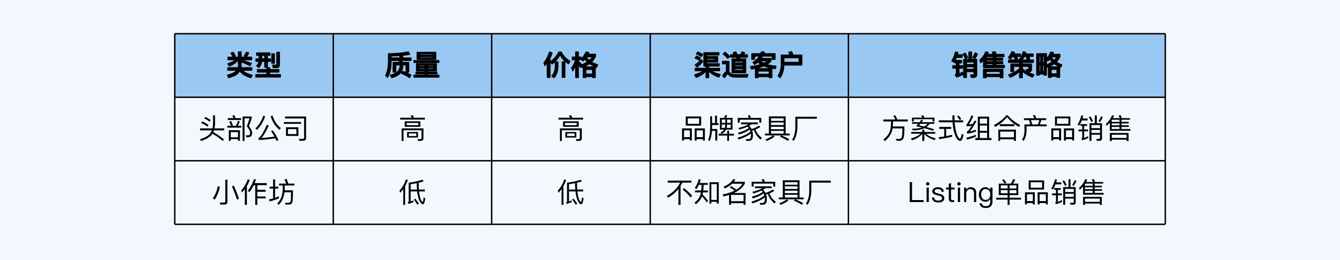 我发现这个行业很特别,头部公司和小作坊的业绩单个对比,差不多有10倍的差距,但是中间却没有的腰部公司过渡。于是我把竞争对手按照MECE原则做了一个分类,如下图所示。