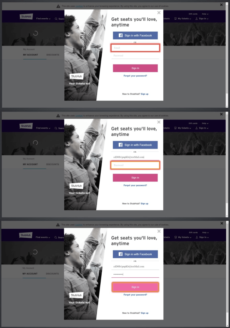 如图1所示,就是用这种方式产生的界面截图,图中依次显示了登录过程中每一个操作的控件,第一张高亮了“Username”的输入框,因为自动化代码会在“Username”框中输入用户名;第二张高亮了“Password”的输入框,因为自动化代码会在“Password”框中输入密码;第三张高亮了”Sign in“按钮,因为自动化代码会去点击这个按钮。