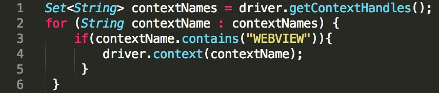 所以,当需要操作Webview中的网页元素时,需要先切换到Webview的Context下,如图4所示代码就完成了这一切换操作。