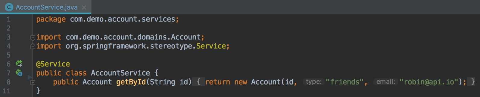 这个Account API的功能非常简单,就是基于你提供的ID值创建一个Account对象,并返回这个新创建Account对象。