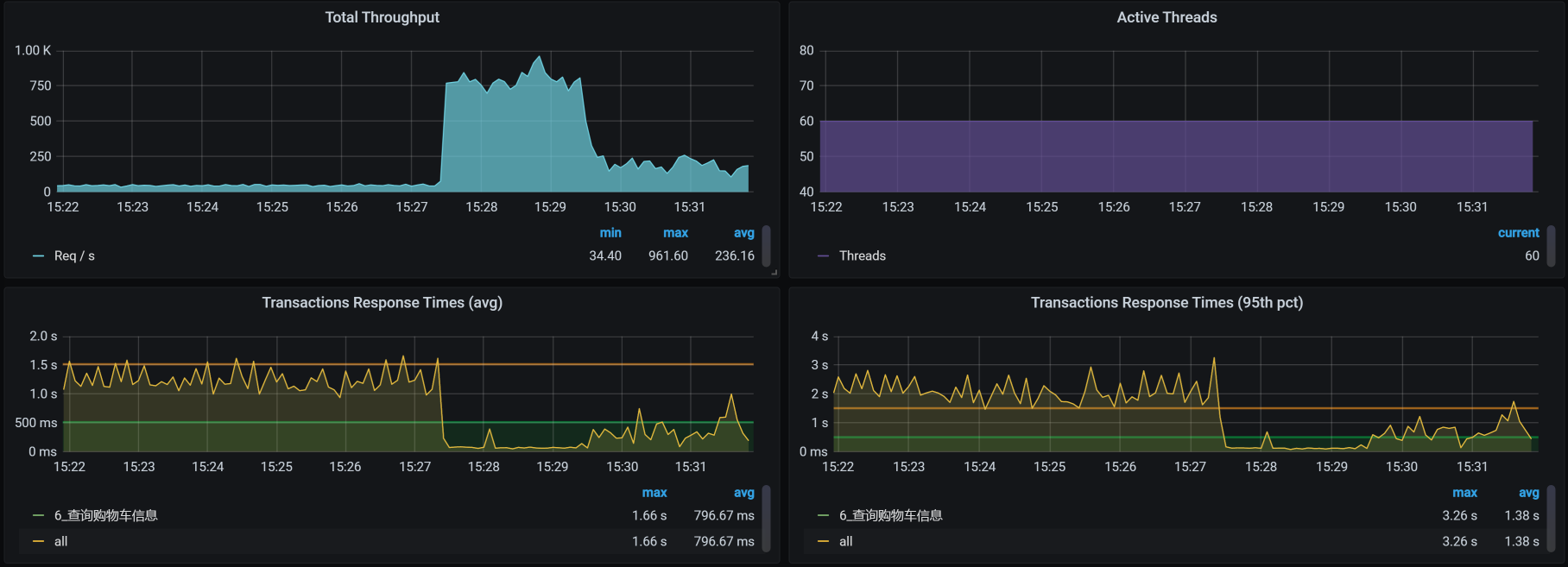 首先,我直接从cart服务的NodePort压进去,得到这样的结果: