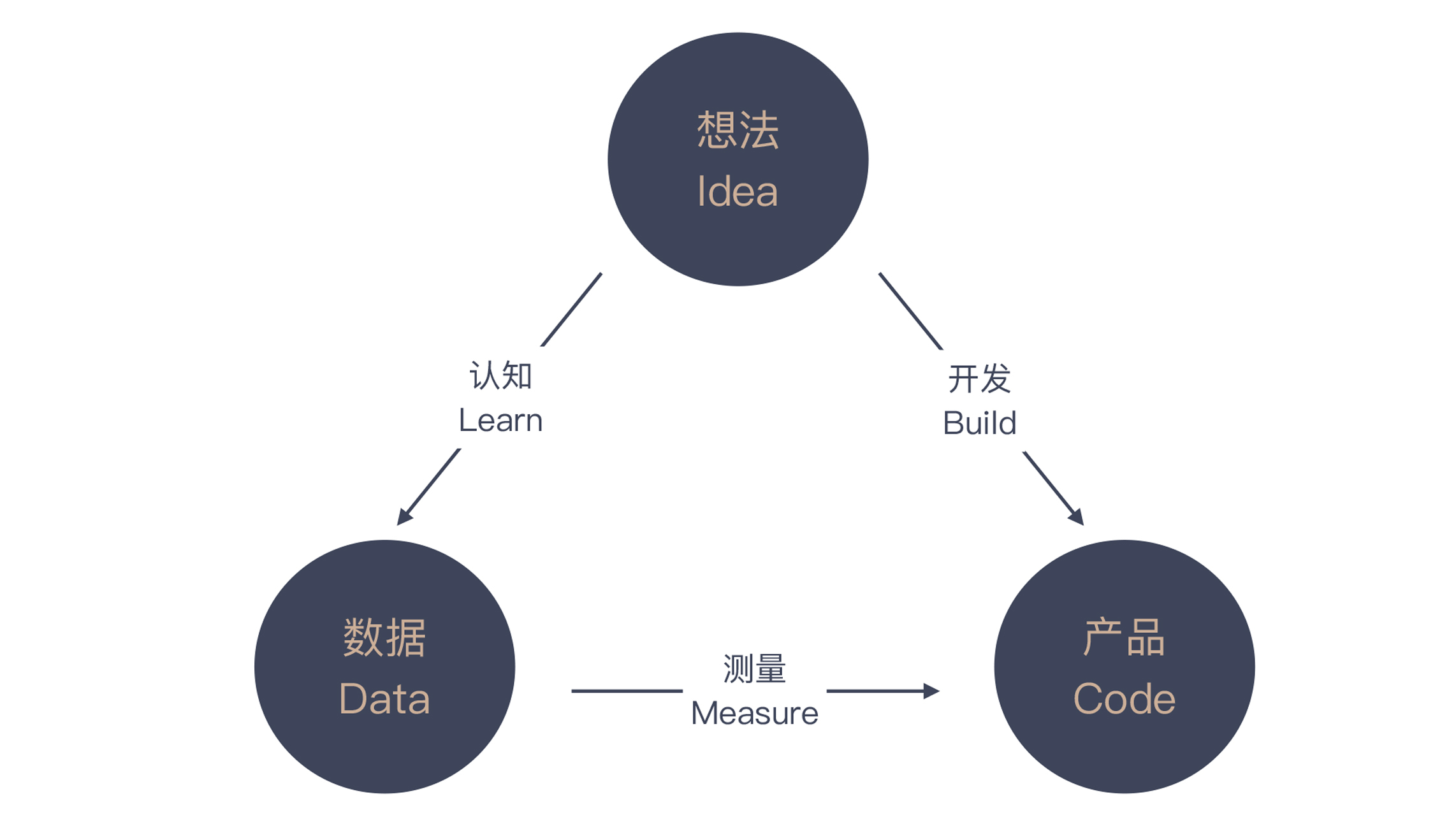 怎么试呢?试就要有试的方法。精益创业的方法论里,提出“开发(build)-测量(measure)-认知(learn)”这样一个反馈循环。就是说,当你有了一个新的想法(idea)时,就把想法开发成产品(code)投入市场,然后,收集数据(data)获取反馈,看看前面的想法是不是靠谱。