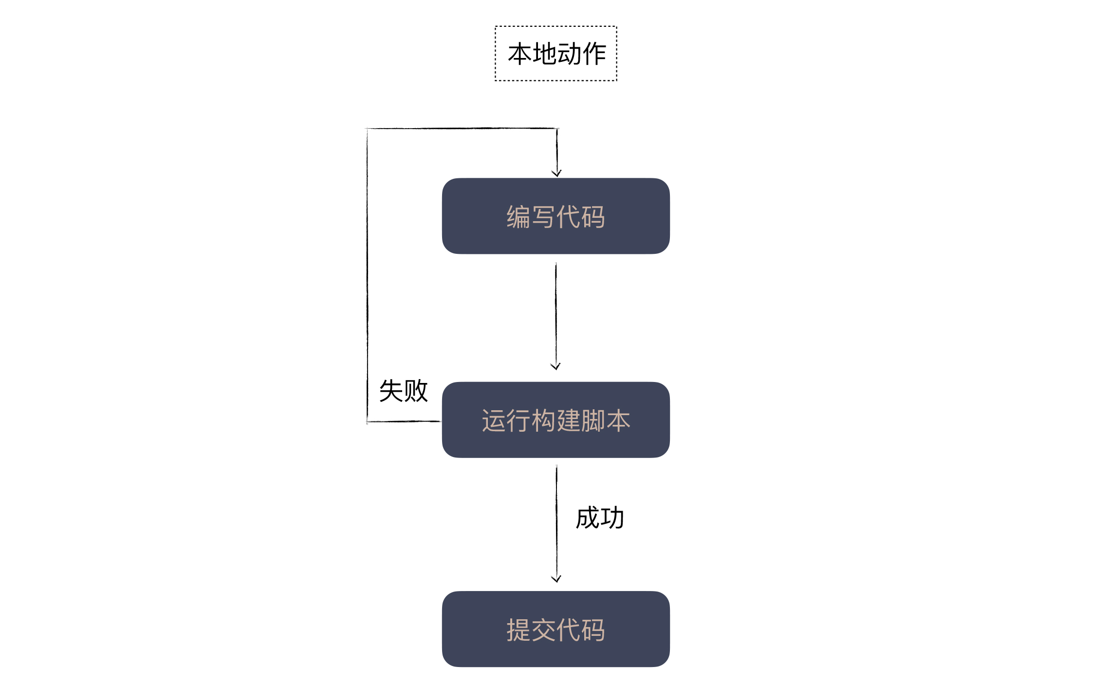 再来看看本地执行的动作。运行构建脚本,如果一切正确,你可以选择提交代码或是继续下一个任务,如果失败,立即修复。