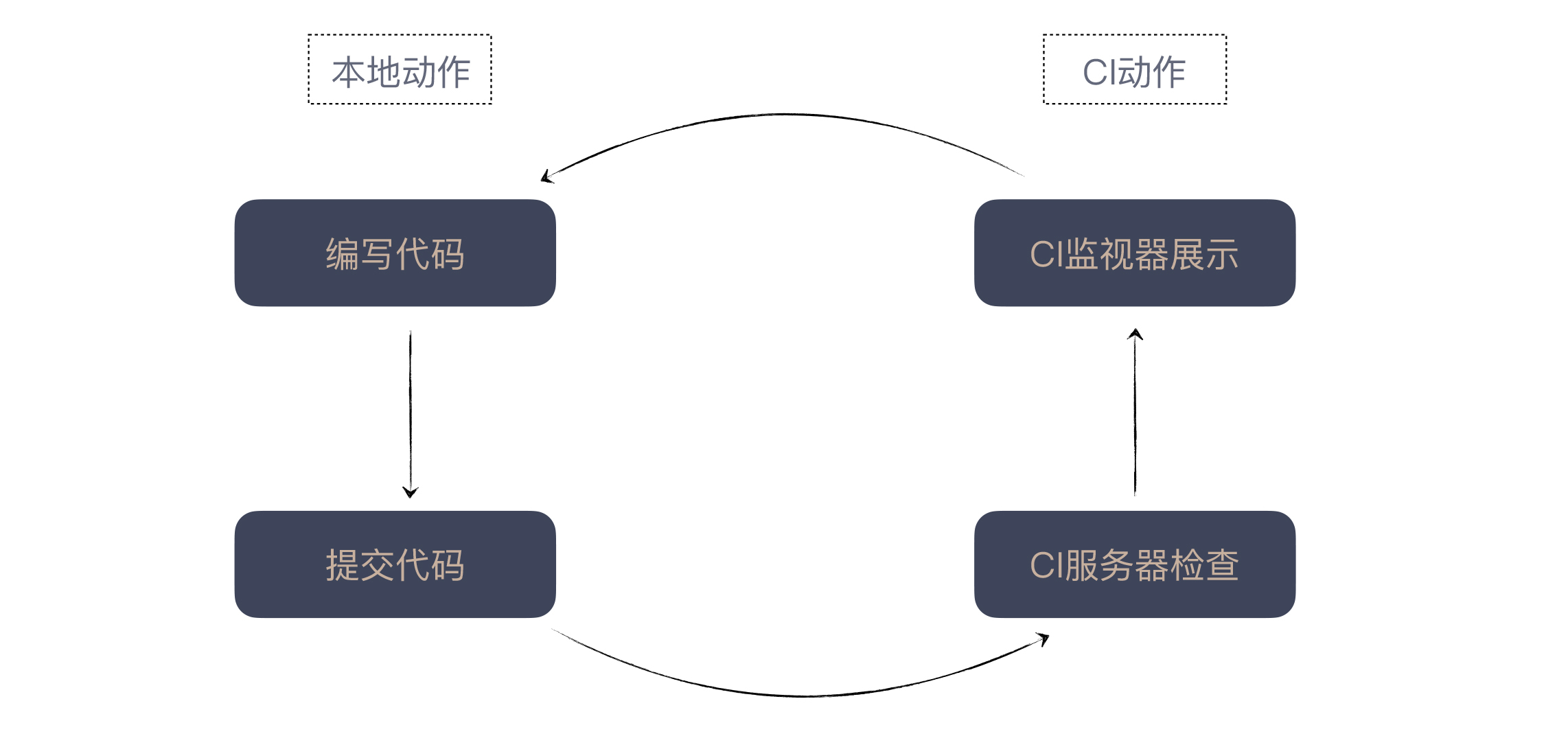 现在我们把这个道理与持续集成结合起来理解,我们的工作流程就变成了这样: