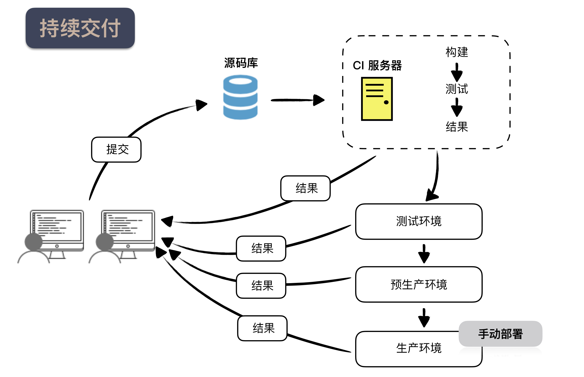 让持续交付这个概念广为人知的是一本书,Jez Humble 和 Dave Farley 的《持续交付》(Continuous Delivery)。
