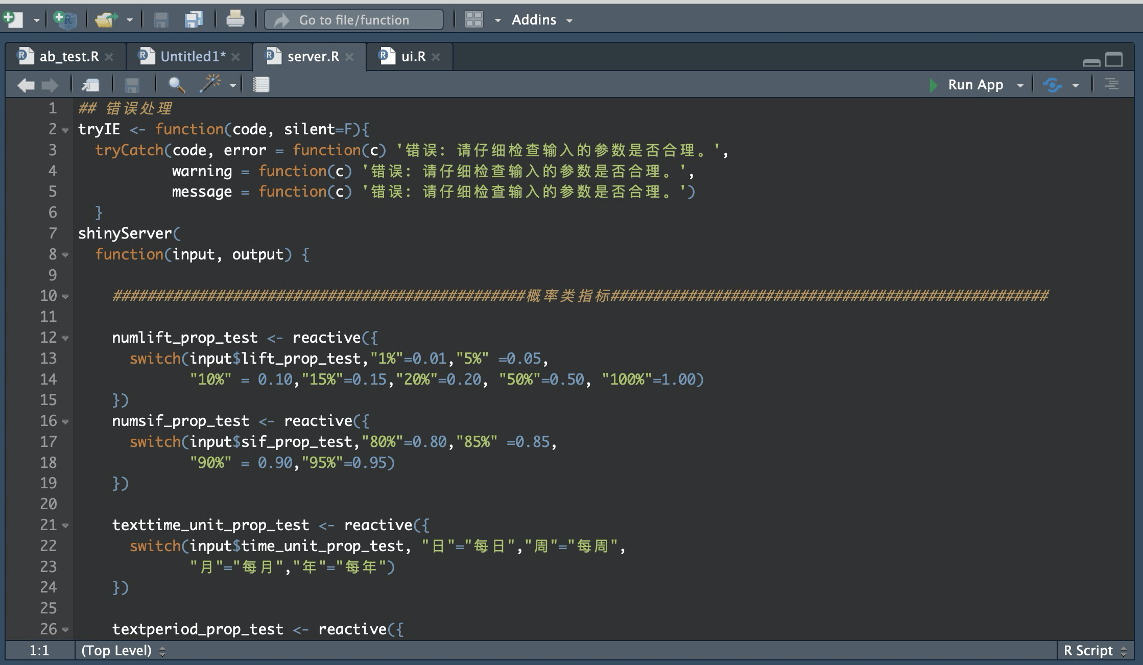 首先,在ui.R中我们需要用户输入原始指标avgRR_prop_test(L11-12):