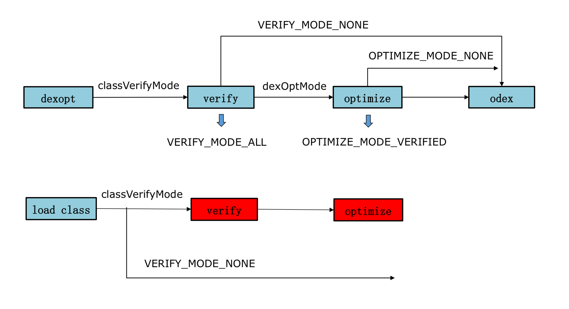 在WeMobileDev公众号发布的《微信Android热补丁实践演进之路》中,我提过在加载类的过程有一个verify class的步骤,它需要校验方法的每一个指令,是一个比较耗时的操作。
