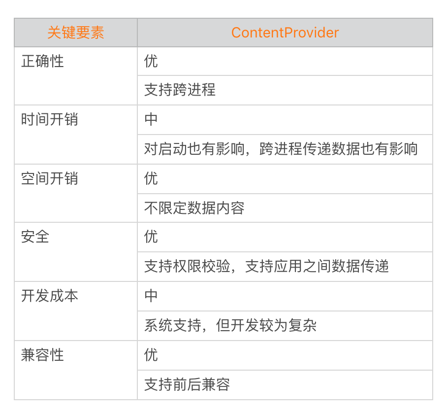 最后我给你总结一下ContentProvider的“六要素”优缺点。