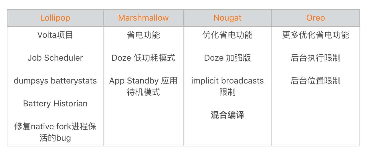那Android为了电量优化都做了哪些努力呢?Google I/O每年都会单独讲解耗电优化,下面我们一起来看看Android在耗电方面都做了哪些改变。