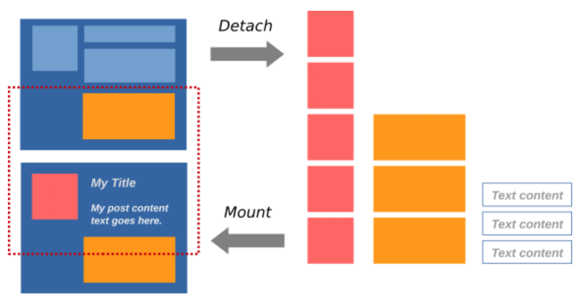 前面也提到过,降低UI的层级是一个非常通用的优化方法。你肯定会想,有没有一种方法可以直接降低UI的层级,而不通过代码的改变呢?Litho就给了我们一种方案,由于Litho使用了自有的布局引擎(Yoga),在布局阶段就可以检测不必要的层级、减少ViewGroups,来实现UI扁平化。比如下面这样图,上半部分是我们一般编写这个界面的方法,下半部分是Litho编写的界面,可以看到只有一层层级。