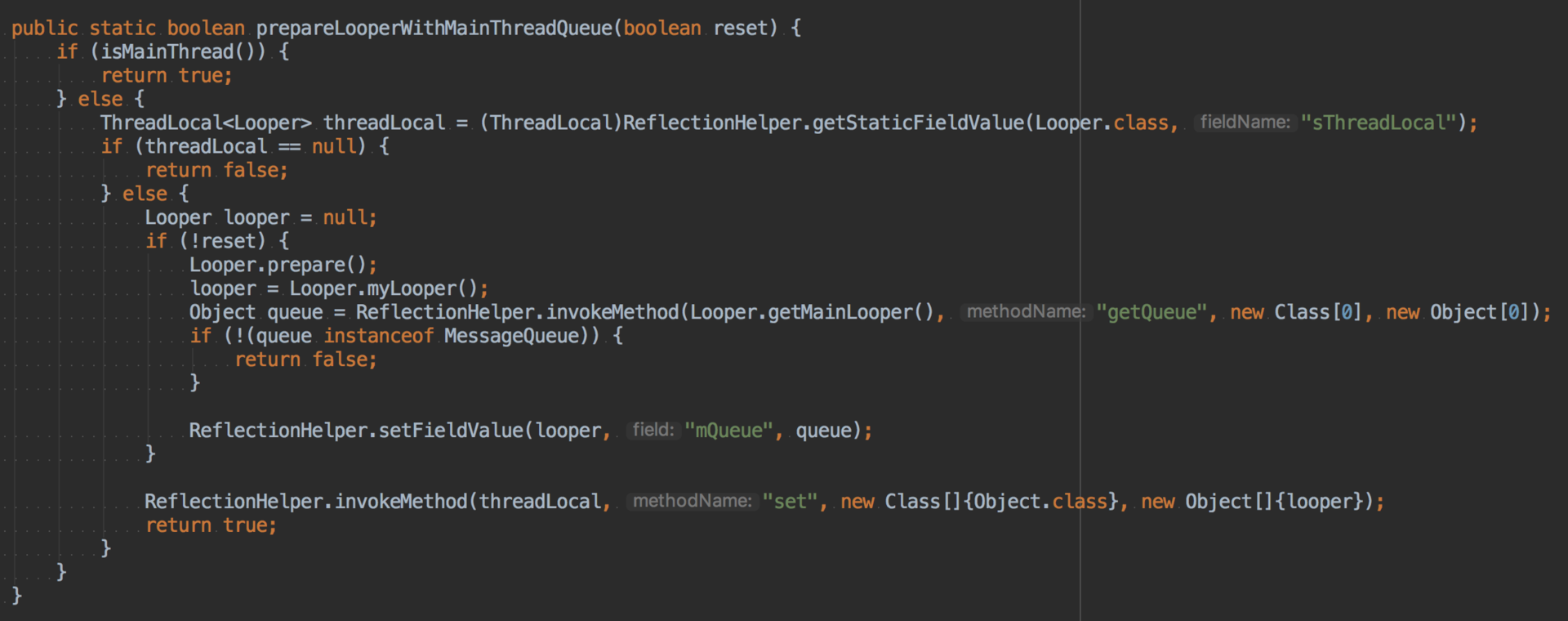 事实上,我们可以通过又一个非常取巧的方式来实现。在使用线程创建UI的时候,先把线程的Looper的MessageQueue替换成UI线程Looper的Queue。