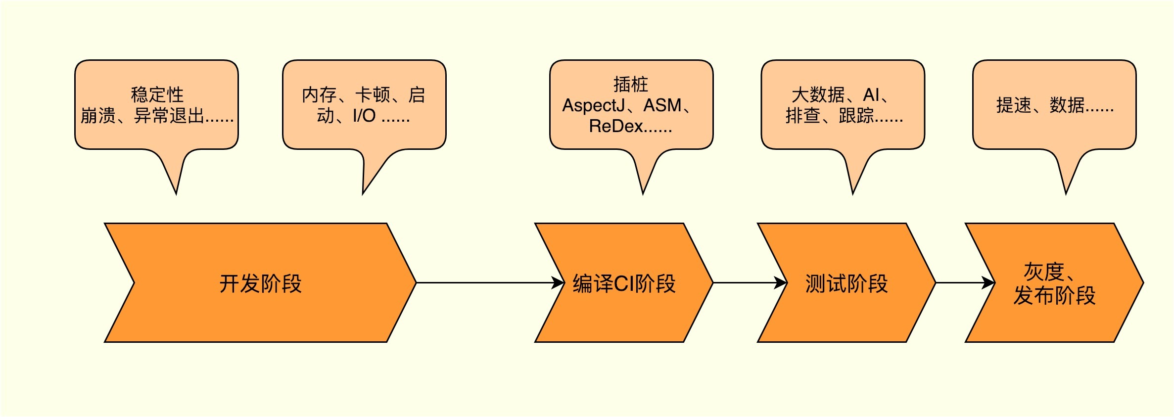 编译、CI阶段。编译CI阶段解决的是如何发现和优化开发阶段的一些编码问题,以及快速构建出最终产物。Google的Gradle、Facebook的Buck为编译速度做了哪些努力?Flutter的Hot Reload为什么可以这么快?AspectJ、ASM、ReDex这三种插桩方法的原理和差别是什么?腾讯的RDM、阿里的摩天轮这些编译构建平台有什么特别之处?