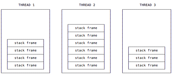 正如这句话所描述的,每个线程都有自己的栈,所以在多线程应用程序中多个线程就会有多个栈,每个栈都有自己的栈帧。