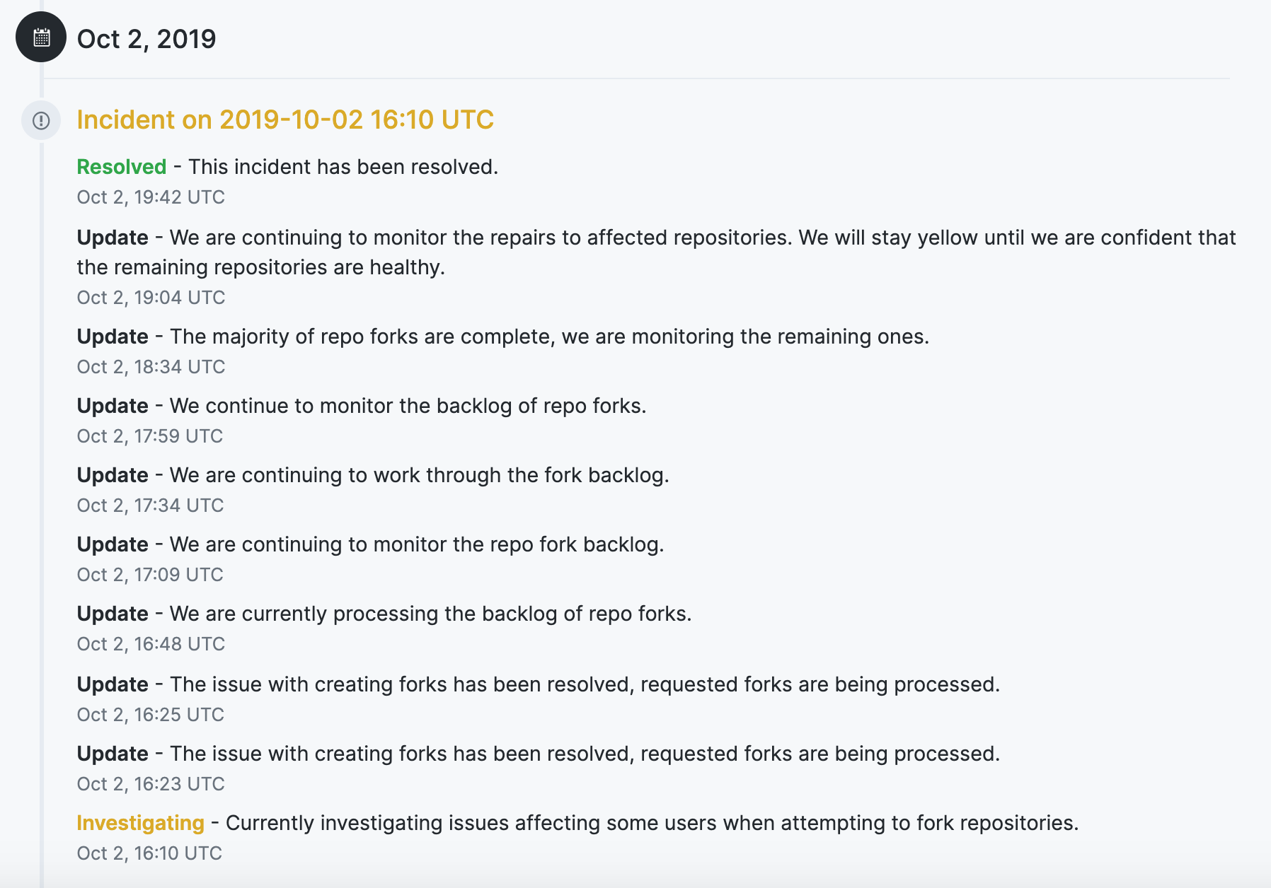 从此以后,GitLab的开放越发“变本加厉”。现在你可以在任何时间去查看服务的实时状态,包括每一次过往的事故分析。同时,名叫“GitLab状态”的Twitter账号实时更新当前的问题,目标就是在任何用户发现问题之前,尽量主动地将问题暴露出来,至今已经发布了将近6000条问题。