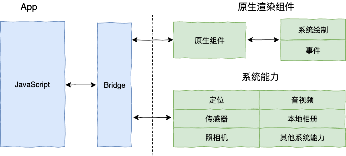 Web时代的方案,主要采用的是原生应用内嵌浏览器控件WebView(iOS为UIWebView或WKWebView,Android为WebView)的方式进行HTML5页面渲染,并定义HTML5与原生代码交互协议,将部分原生系统能力暴露给HTML5,从而扩展HTML5的边界。这类交互协议,就是我们通常说的JS Bridge(桥)。