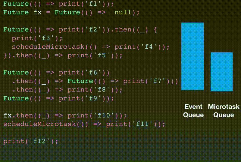 scheduleMicrotask(() => print('This is a microtask'));
