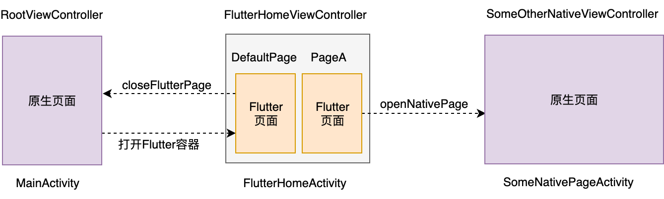 Flutter跳转至原生页面的两种场景,如下图所示: