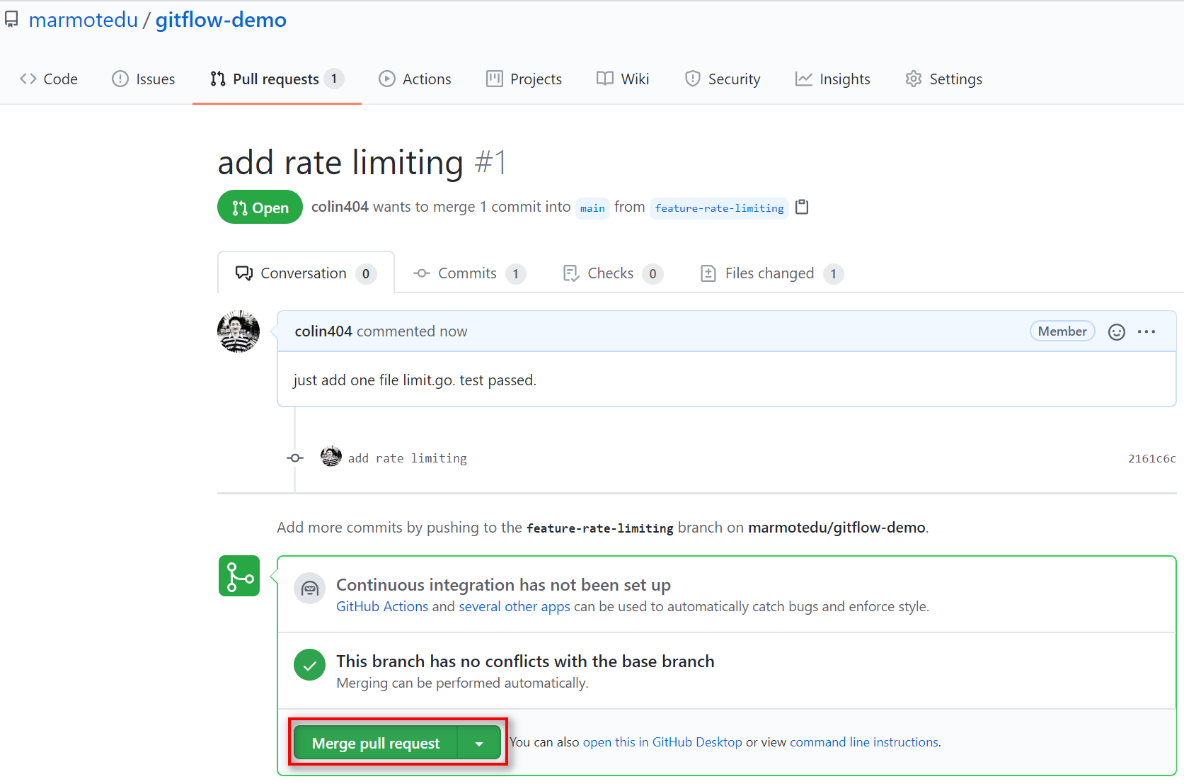 $ git clone https://github.com/colin404fork/gitflow-demo