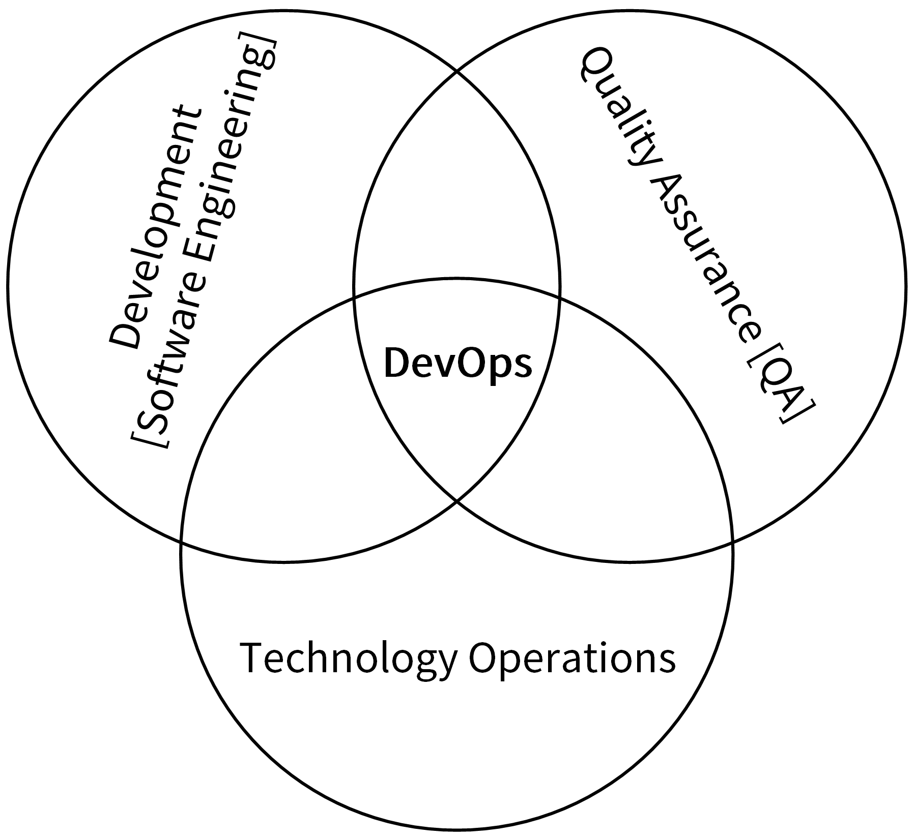 DevOps(Development和Operations的组合)是一组过程、方法与系统的统称,用于促进开发(应用程序/软件工程)、技术运营和质量保障(QA)部门之间的沟通、协作与整合。这3个部门的相互协作,可以提高软件质量、快速发布软件。如下图所示: