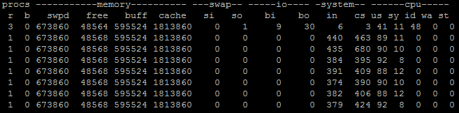 当然,还有更加通用的诊断方向,利用vmstat之类,查看上下文切换的数量,比如下面就是指定时间间隔为1,收集10次。