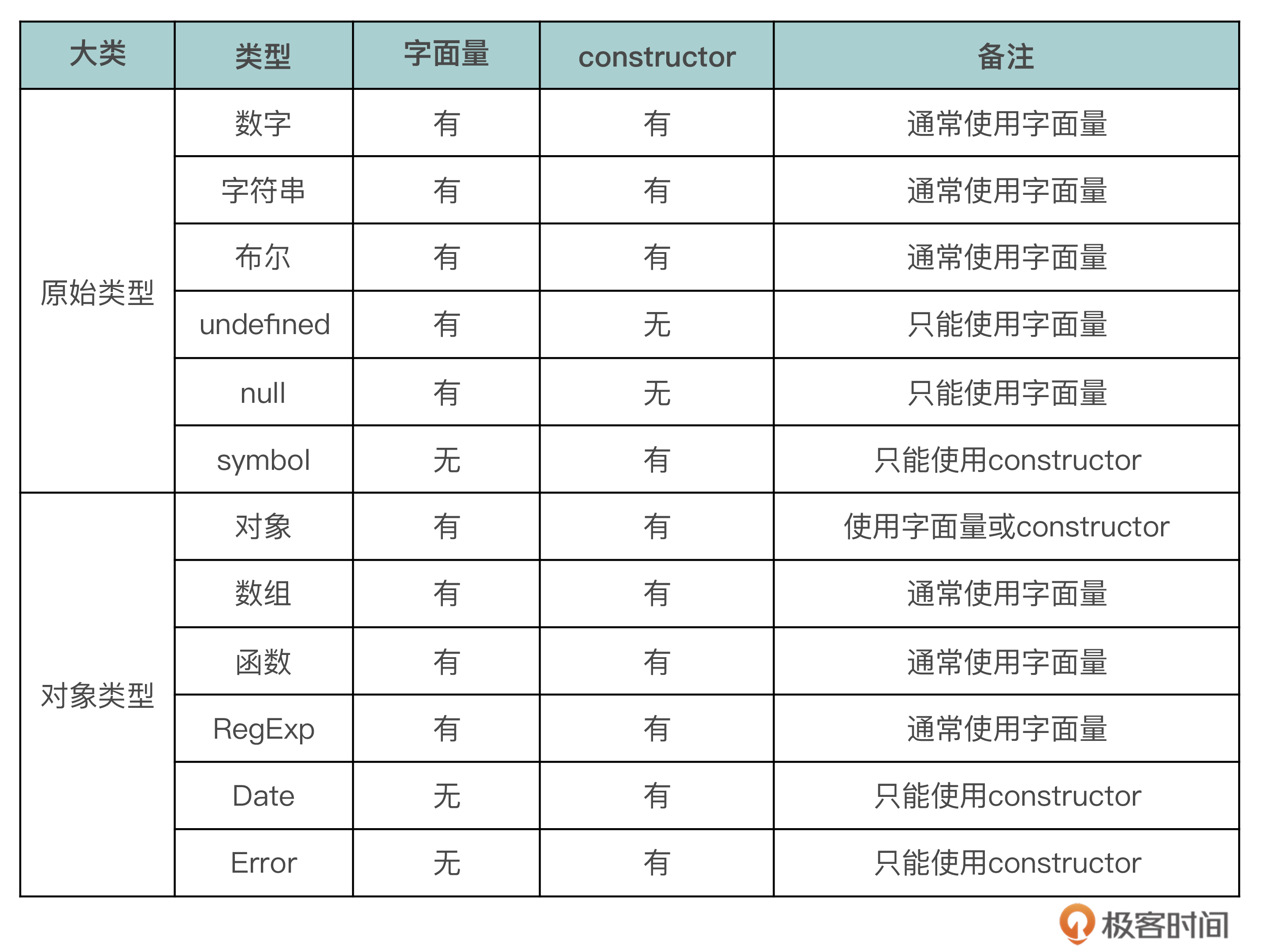 其实,不光是对象,数组和函数也都可以不用constructor,而是通过字面量的方式创建。反之,我们说的数字、字符串和布尔除了字面量,也都可以通过constructor创建。