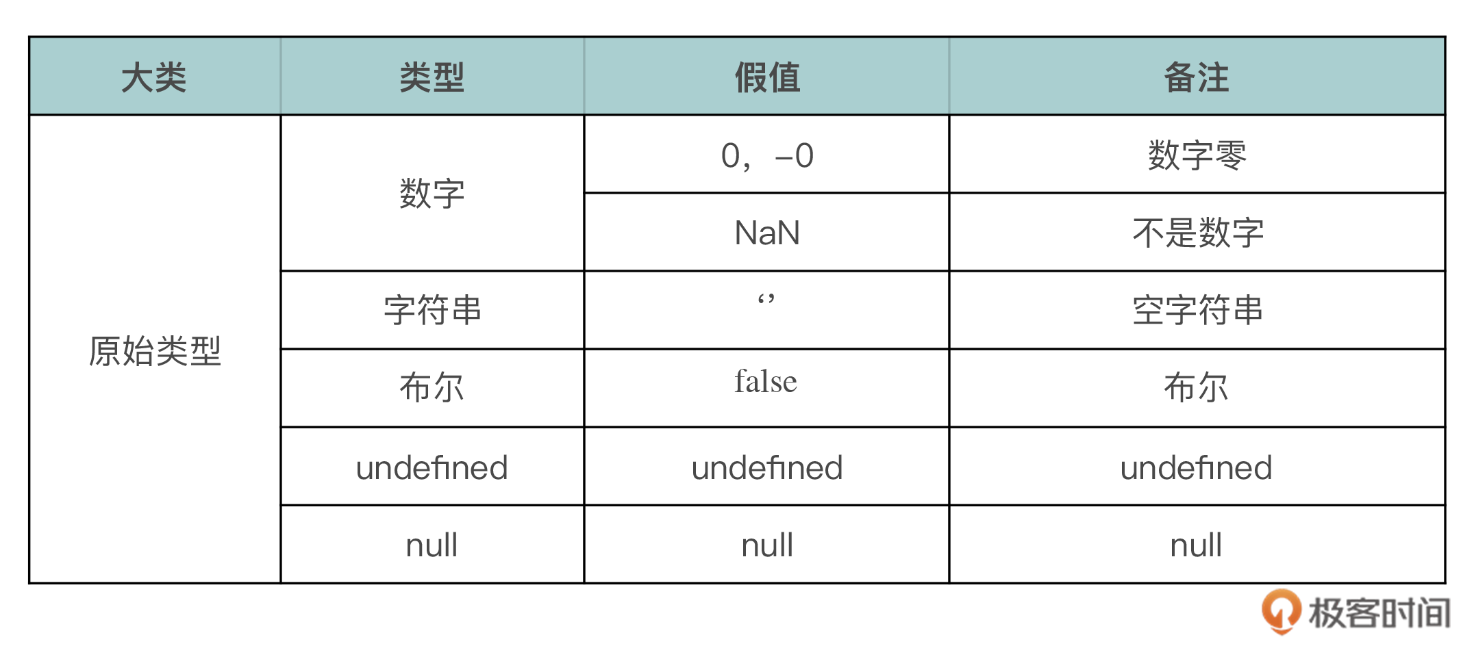 原始类型是我们经常用到的数据类型,这里有基础的类型,比如数字、字符串和布尔,也有特殊的类型,比如null和undefined。相比对象类型,原始类型数据从值的角度来看是理论和实际偏差最大的部分,另外因为它看上去比较简单,所以也同时是很容易被忽略的部分。