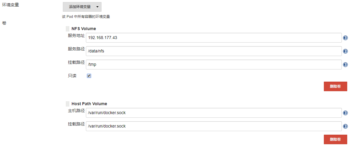 nfsVolume(mountPath: '/root/.m2', serverAddress: '192.168.177.43', serverPath: '/data/nfs/.m2', readOnly: false),