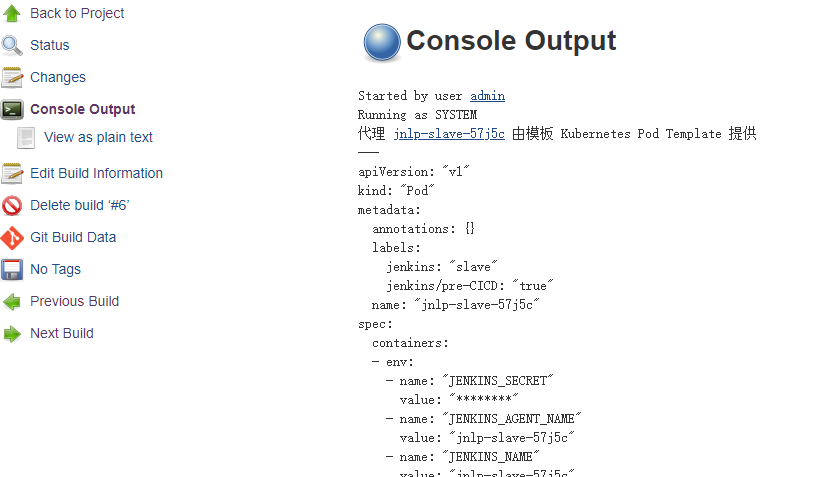 上面配置的参数说明应该不用再重复介绍了,有不懂的参数可以参考之前的文章即可。配置保存后修改pipeline,只需要将PodTemplate方法配置的部分去掉即可。