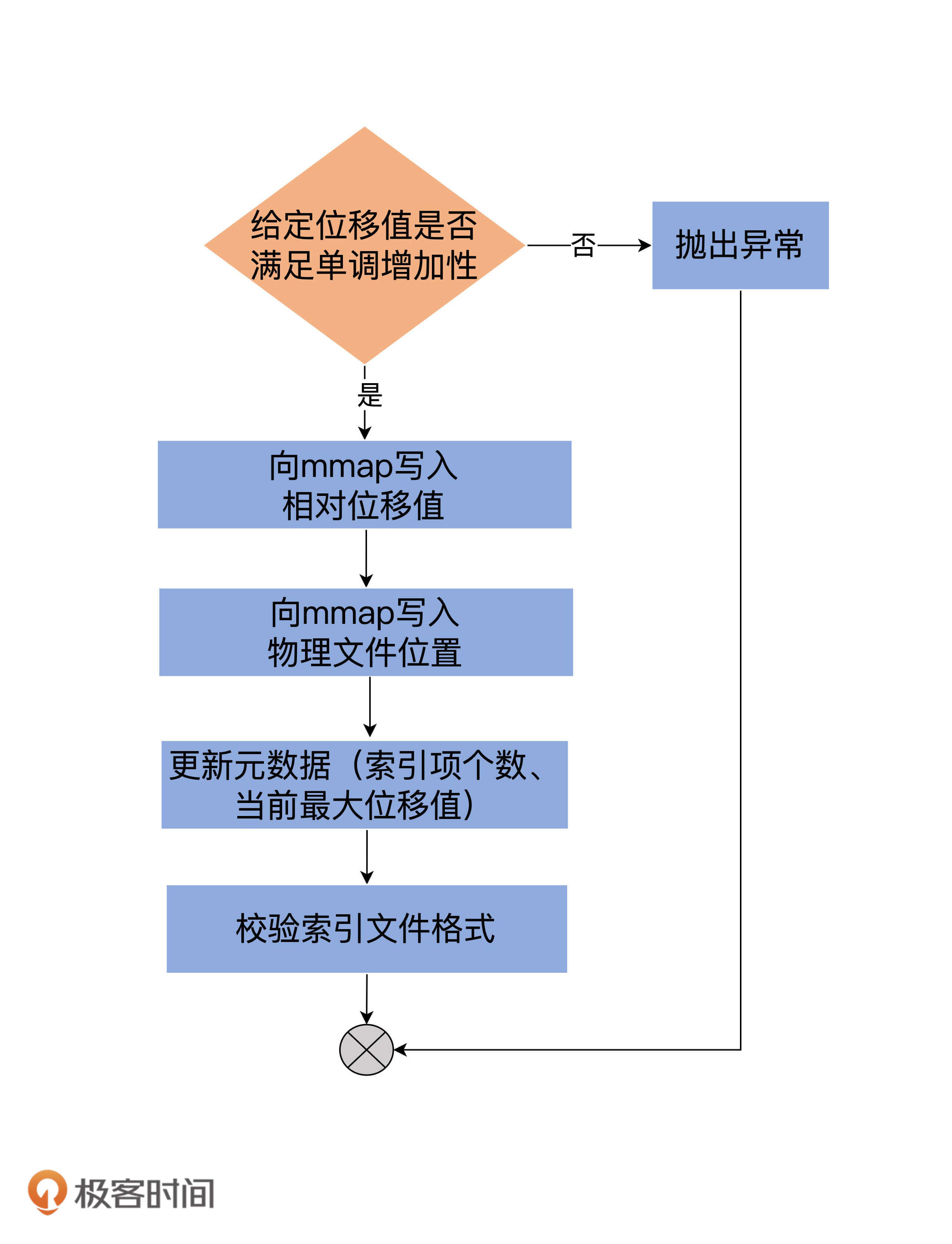 // 要保证待写入的位移值offset比当前索引文件中所有现存的位移值都要大
