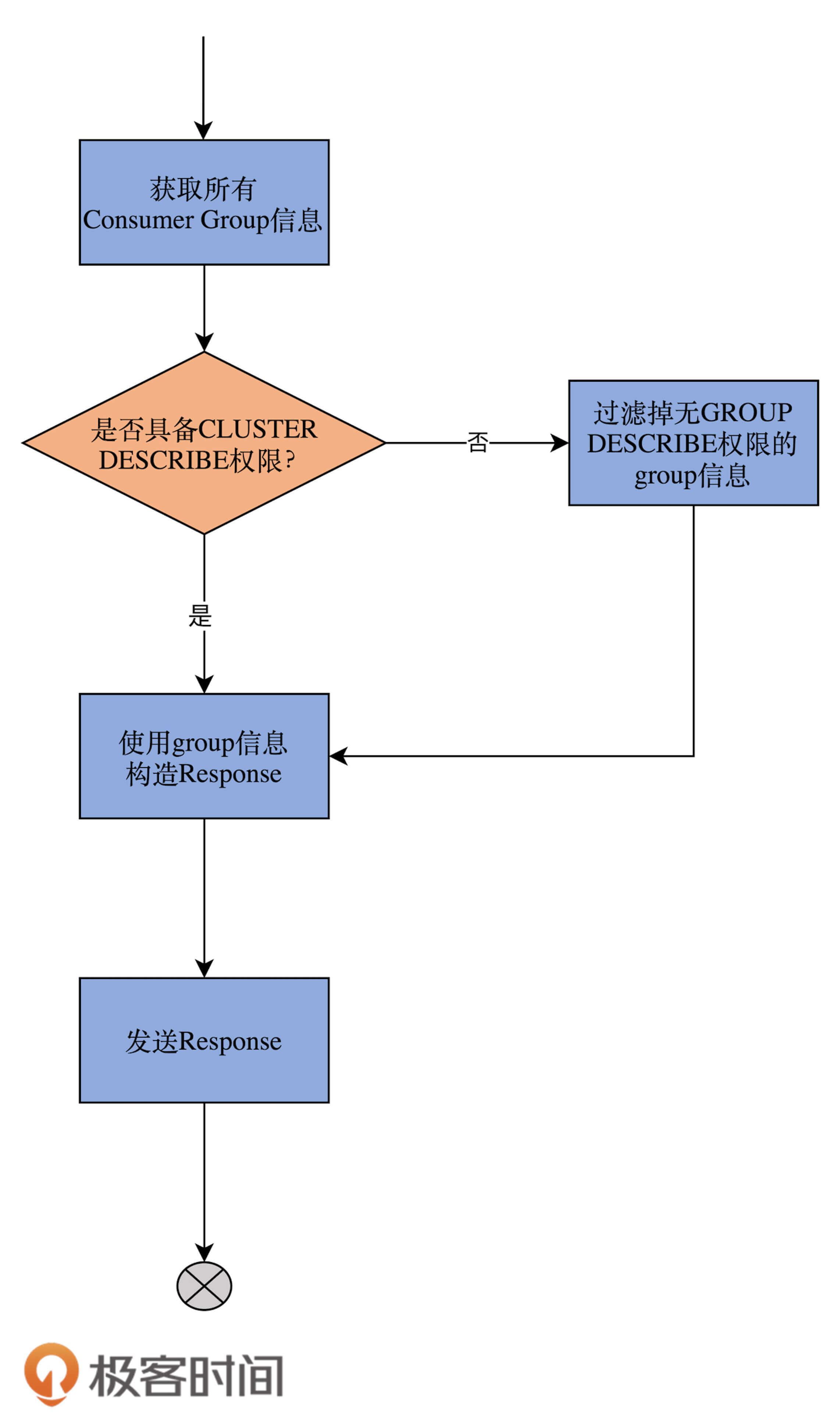 大体来看,handleListGroupsRequest方法的实现逻辑非常简单。通过GroupCoordinator组件获取到所有的消费者组信息之后,代码对这些Group进行了权限校验,并最终根据校验结果,决定给Clients返回哪些可见的消费者组。