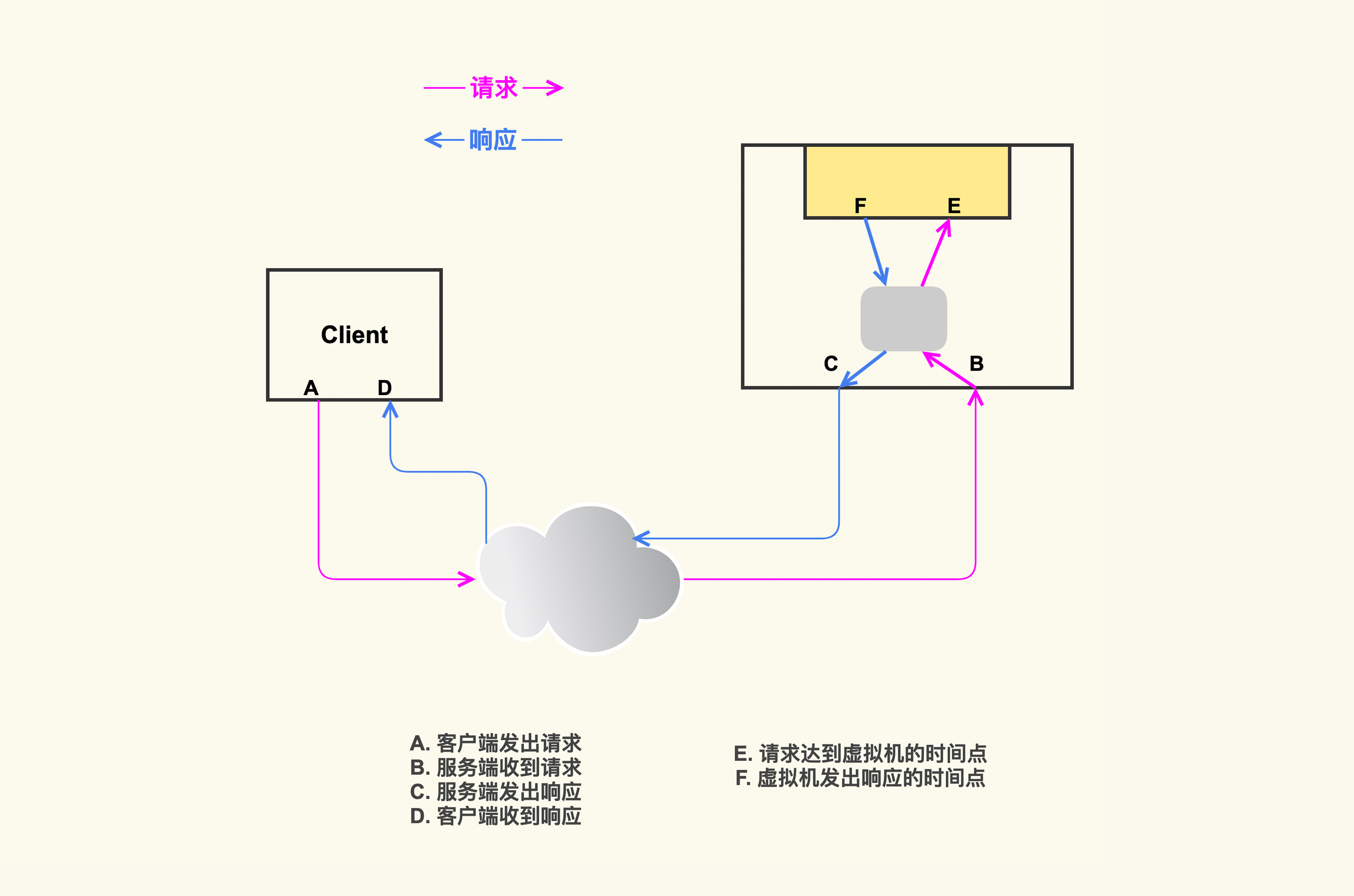 C/S架构是互联网服务中比较典型的场景,那针对其他场景我们该如何来分析问题呢?接下来我们以虚拟机这种场景为例来看一下。