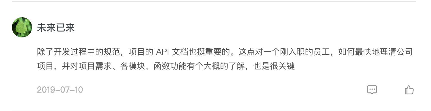第四个问题,是未来已来同学的留言。他提到了项目的API文档的问题,这一点说得非常好,在这里我也简单介绍一下。