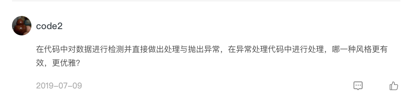 但是,如果换成一个产品的服务器端,它需要应对各种可能发生的情况,以保证服务器不崩溃。比如在连接数据库时,如果网络异常,无法连接,那就需要捕获(catch)这个异常(exception),进行记录,并同时保证其他功能不受影响。这种情况下,我们通常会选择第二种方式。