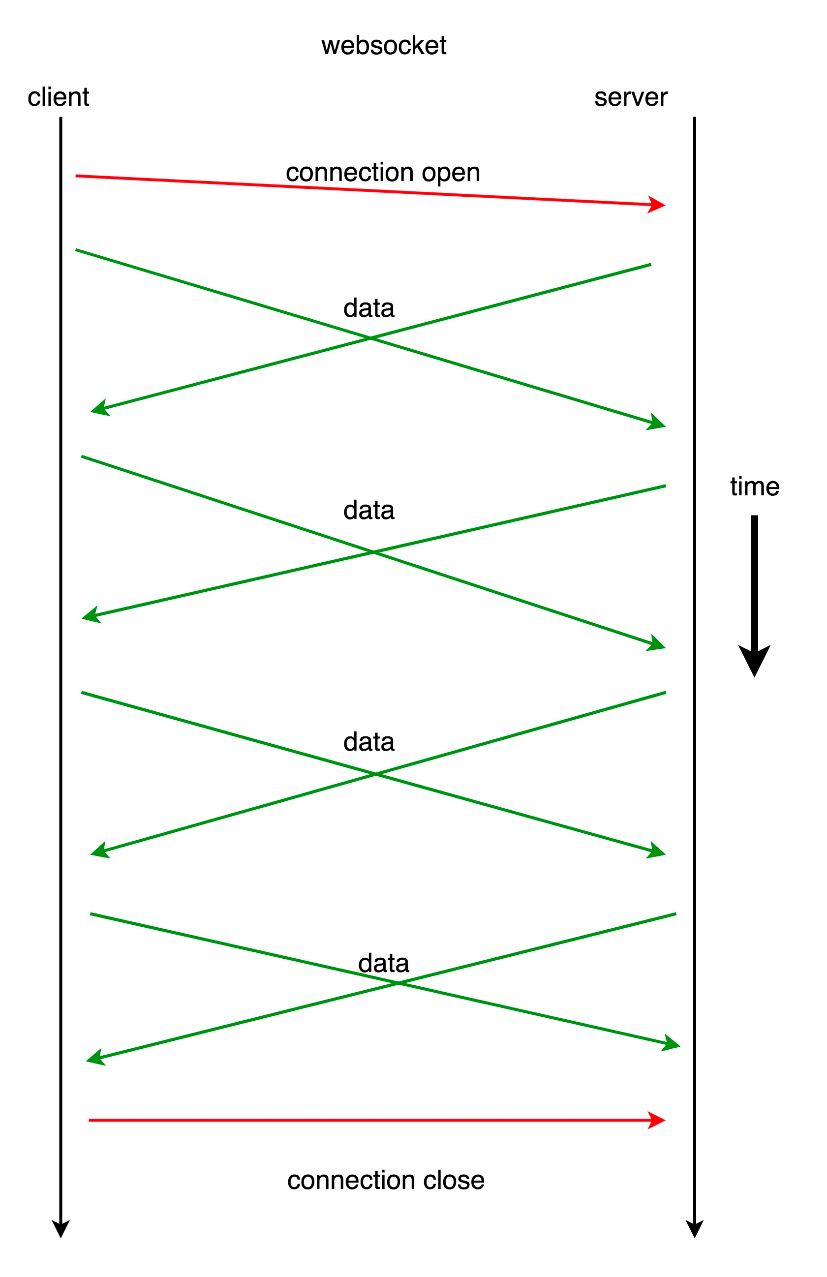 因此,相对于REST来说,Websocket是一种更加实时、高效的数据交换方式。当然缺点也很明显:因为请求和回复是异步的,这让我们程序的状态控制逻辑更加复杂。这一点,后面的内容里我们会有更深刻的体会。
