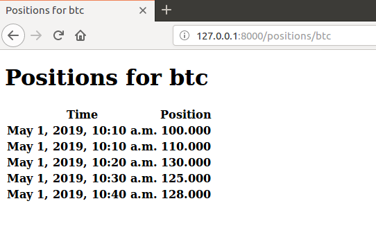 到这里,我们就可以通过 http://127.0.0.1:8000/positions/btc 来访问啦!