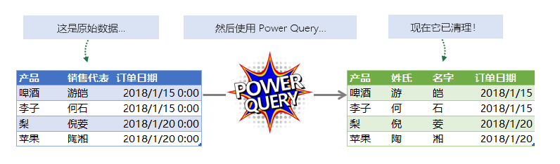 拆分的功能在Excel中也是可以实现的,但是Power Query能够在拆分之后,对新导入的文件也能通过点击刷新实现自动拆分。那么接下来我就教你怎样在Power Query里,使用拆分列功能来拆分日期时间和姓名,并在增加文件后实现自动更新。