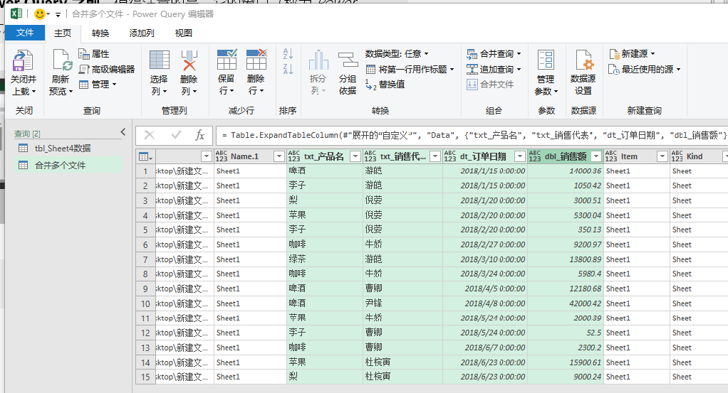 具体做法是:你可以在存放半年销售数据的文件夹中,直接放入下一个月的销售数据。只要原始的Excel文件格式和之前的6个文件相同,那么当你点击“刷新”按钮后,Power Query就会自动加载新的Excel文件,并自动把新的数据中的姓名、日期进行拆分。