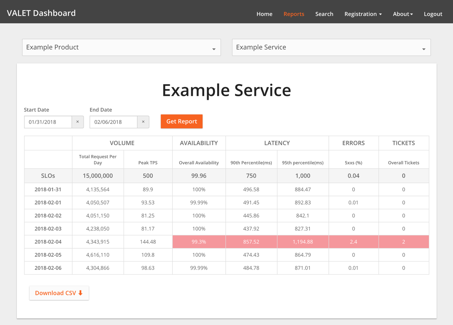 这里我给出一个Google提供的,针对类似于我们trade_cart的一个应用服务,基于VALET设计出来的SLO的Dashboard样例,结合上面我们介绍的部分,就一目了然了。-