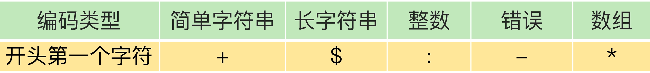 这种类型就是用一个字符串来进行编码,比如,请求操作在服务器端成功执行后的 OK 标识回复,就是用这种类型进行编码的。