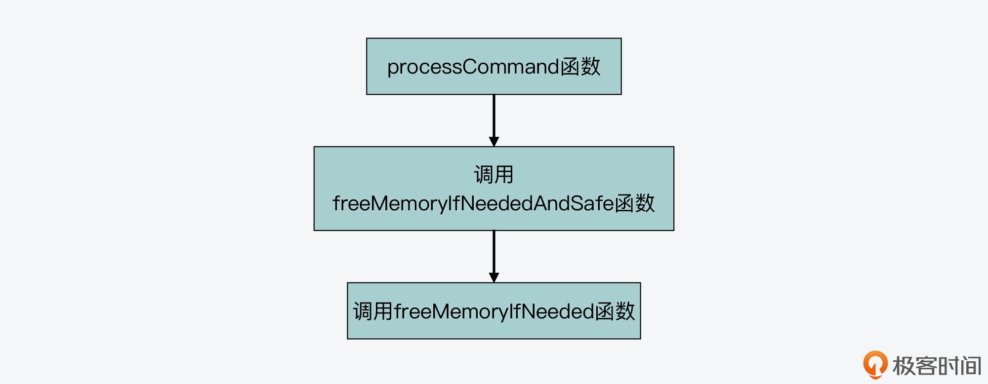 freeMemoryIfNeeded 函数是被 freeMemoryIfNeededAndSafe 函数(在 evict.c 文件中)调用,而 freeMemoryIfNeededAndSafe 函数又是被 processCommand 函数所调用的。你可以参考下面的图,展示了这三者的调用关系。