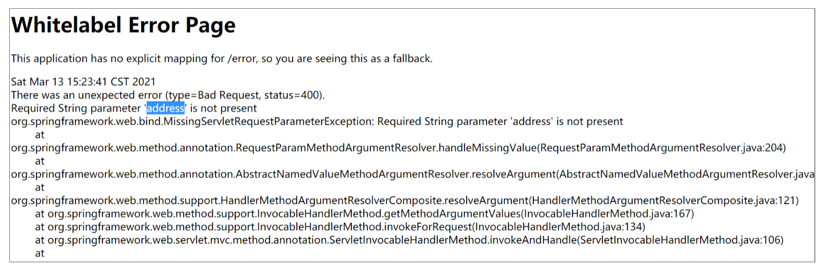throw new ServletRequestBindingException("Missing argument '" + name +